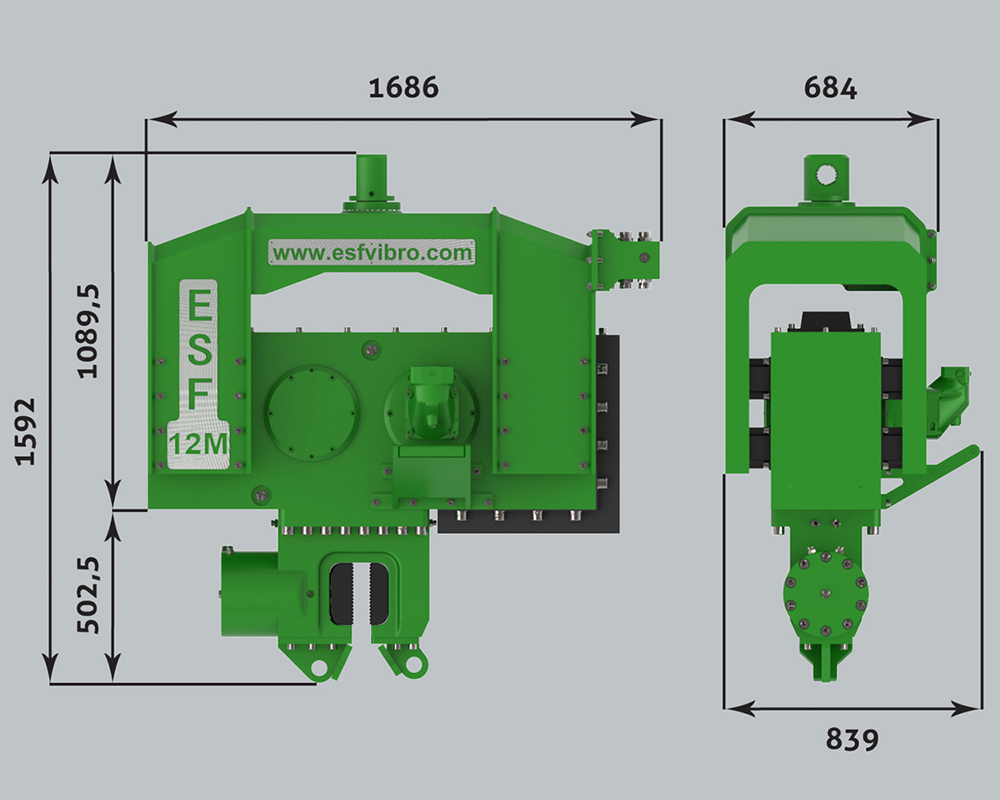 ESF 12M is attached to 45-50 tons class excavators and capable to drive steel sheet piles and steel tubes up to 12 meters in hard dense clay ground formations.