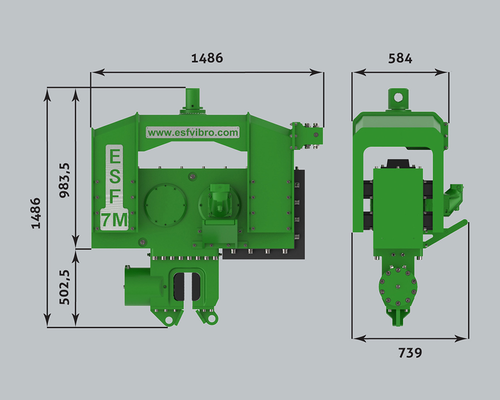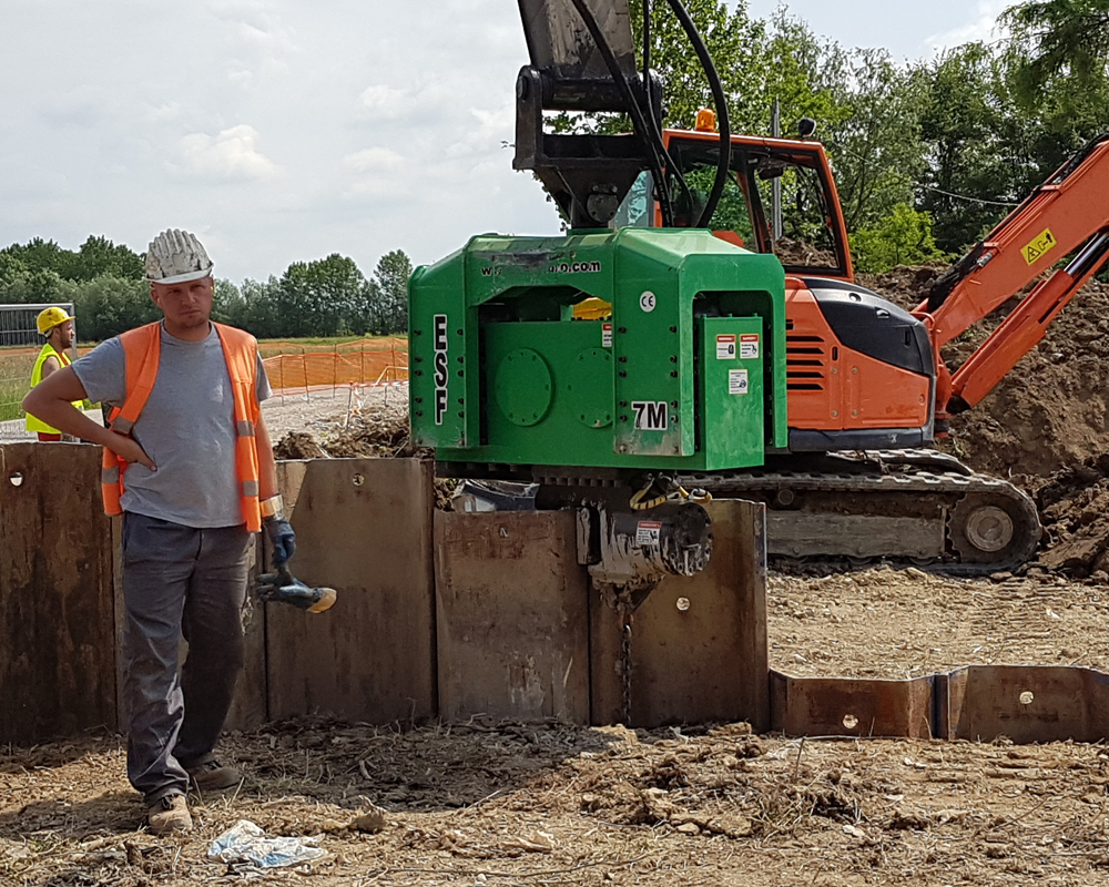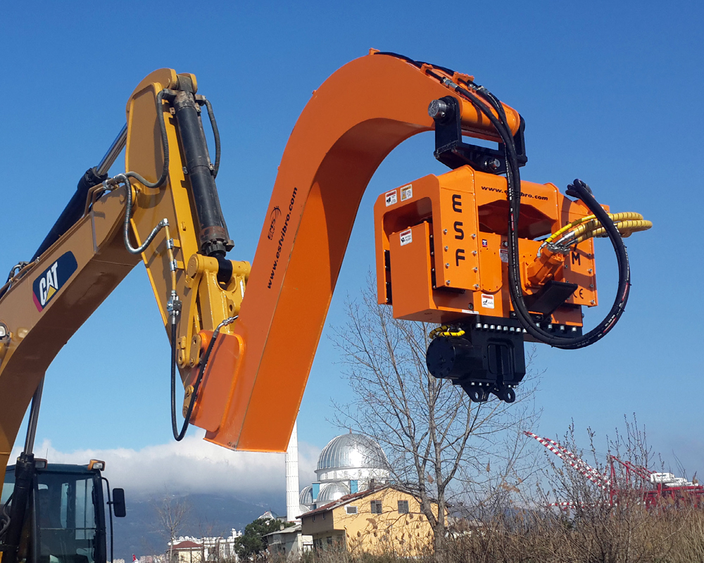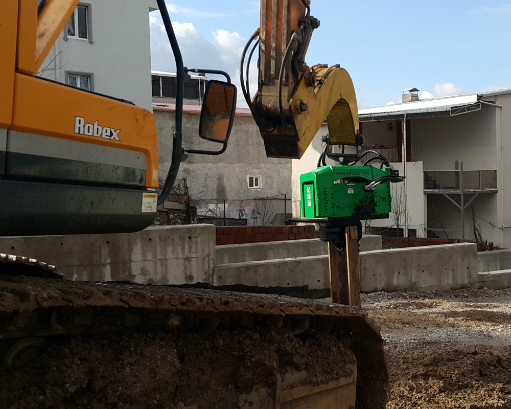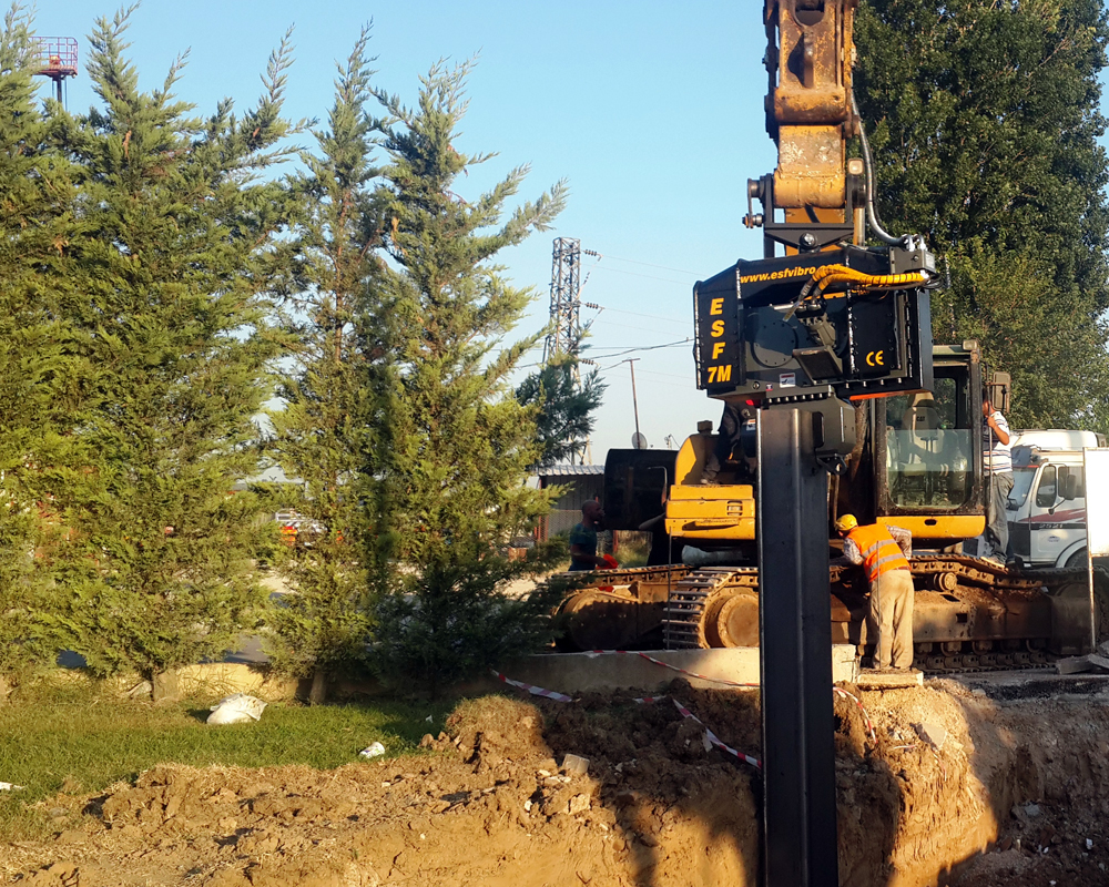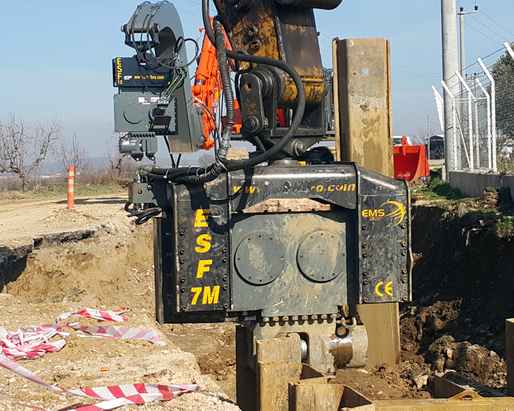 ESF 7M is attached to 30 tons class excavators and capable to drive up to 10 mt steel sheet piles or steel tubes in normal soil formations.