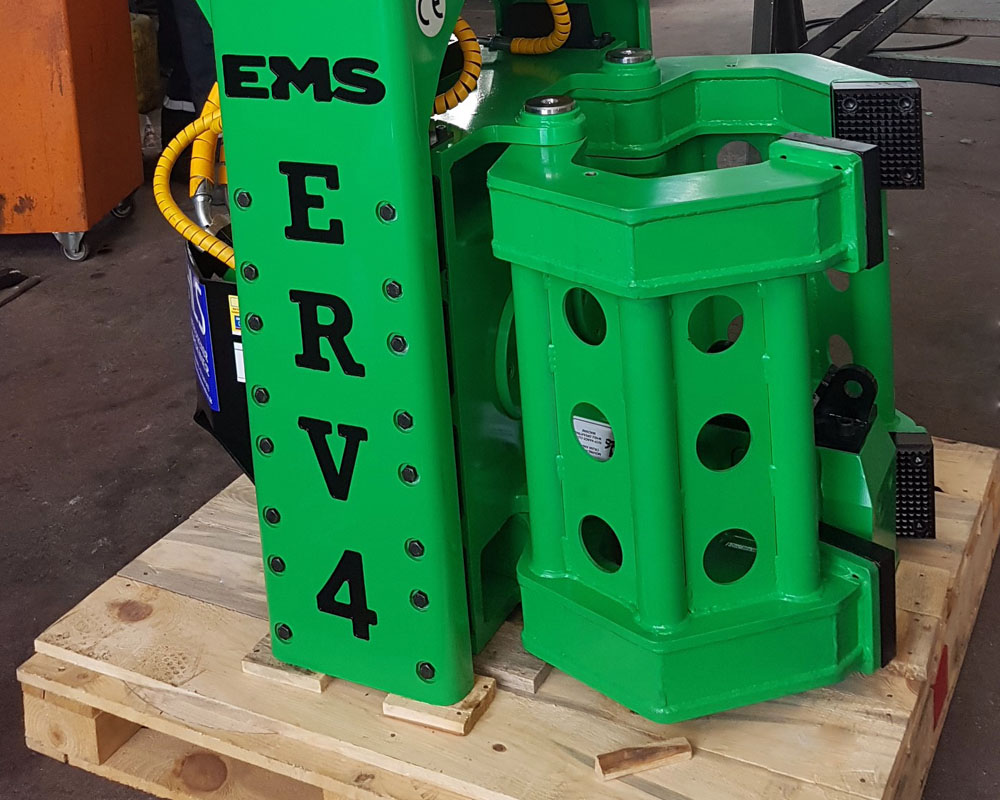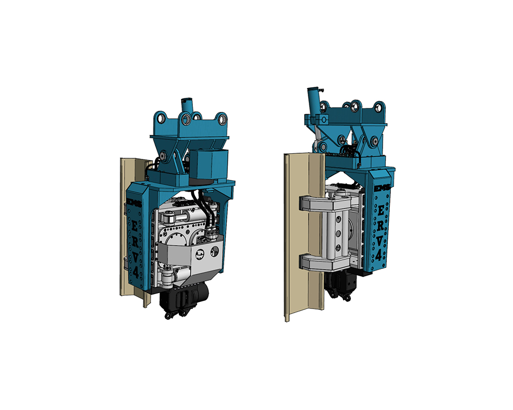 ERV Series Robotic Pile Drivers Enabling You To Drive Sheet Piles, Steel Tubes,Timber Piles, H,I Beams Cheaper , Safer, Quicker Than Traditional Pile Drivers. ERV Series Robotic Pile Drivers With Side Grip And Bottom Clamp Picks Up The Piles And Turn To Desired Position Adjusting The Tilt And Start Driving the Pile. ADVANTAGES. Drive Steel Sheet Piles , Steel Tubes , Timber Piles, H-I Beams. No Manpower Needed except excavator operator resulting less cost. Quick Change of Hands Suiting Your Pile Type and Size. Special Design resulting No Over Heating Problem. Carrier : 20-25 tons class excavators.